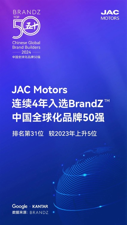 JAC Group четвертий рік поспіль входить до 50 найкращих глобальних брендів Китаю за версією BrandZ