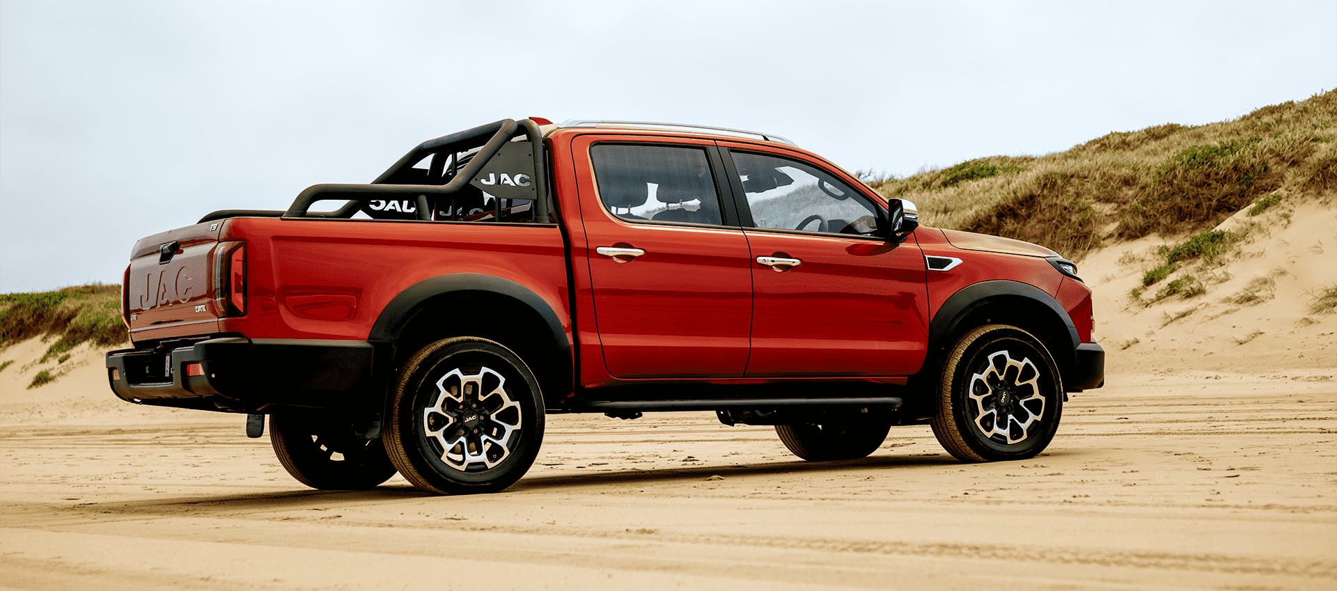 Електропікап JAC T9 EV, створений на ексклюзивній платформі JAC для середньо- та великорозмірних інтелектуальних пікапів, оснащений сучасною LFP-батареєю ємністю 88,02 кВт·годвід CATL, що забезпечує запас ходу понад 330 км та гарантією на силову батарею 8 років або 400 тис. км в залежності що настане раніше..